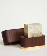 Handmade from reclaimed, old-growth redwood with a gilded, 24KT gold leaf bottom, our playing card display case is made using redwood selectively milled from boards that initially came from early 20th-century landmark water towers in Chicago. This 300+-year-old wood has striking grains that lend a sense of history and beauty to these functional forms making each one unique. This handsome case is designed to hold two standard, poker-size decks.