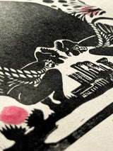 - Each print is hand-rubbed with a traditional barren and hand painted with red gouache. No two will be exactly the same.