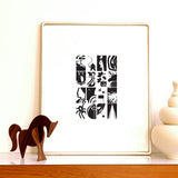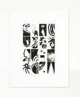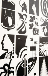 Our "Loteria del Viva" print series is a modern take on the classic imagery from the Mexican game of chance, "Loteria." Screen-printed, water-based, velvety-black ink lends a glamorous, black and white feel to the artwork celebrating this traditional, folksy game of chance and art.