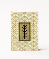 - tuck box has an embossed, gold foil design on premium, heavy paper stock